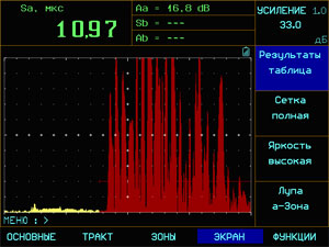| Измерение амплитуды | в процентах от высоты экрана / в дБ относительно уровня порога в зоне / в дБ относительно опорного сигнала / в дБ относительно кривой амплитуда-расстояние |